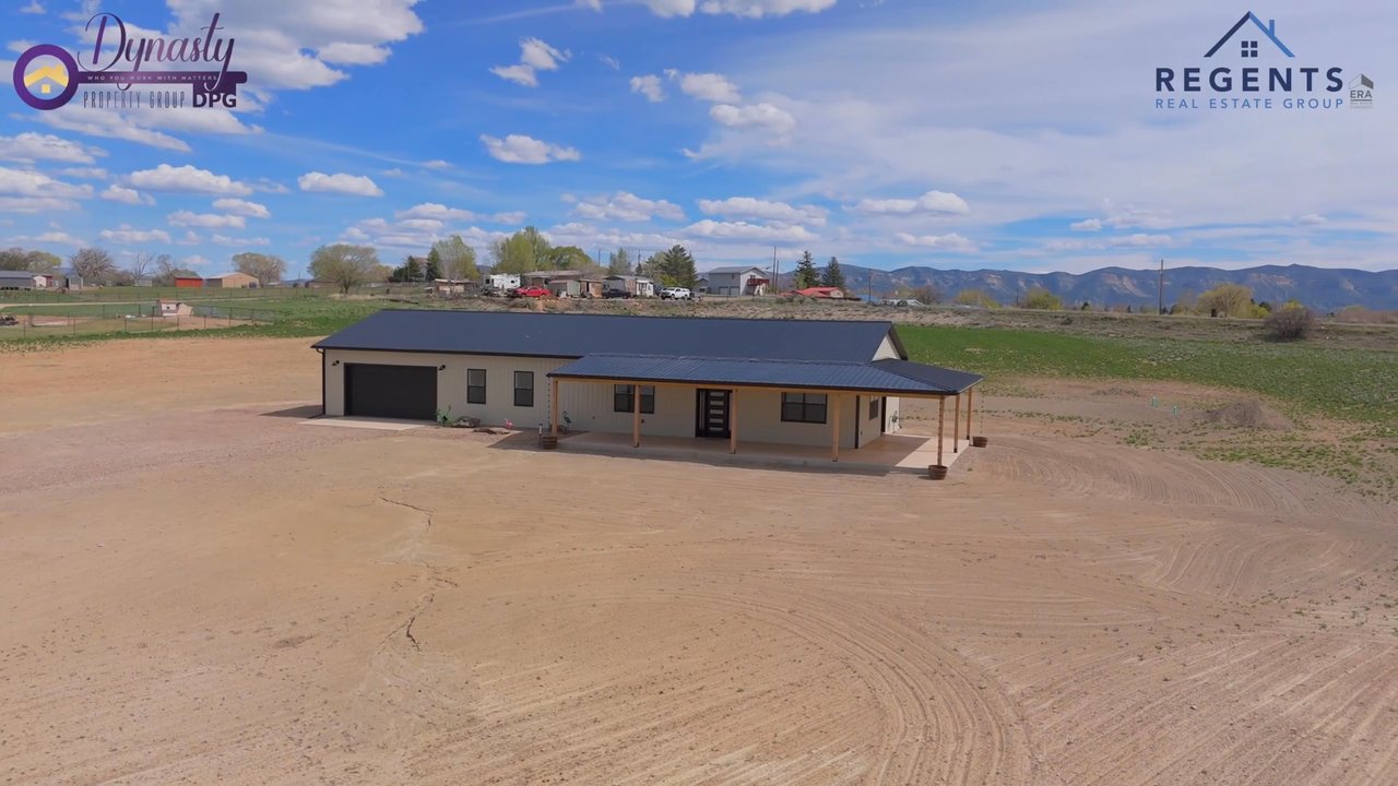A refined expression of modern Colorado living, this newly completed Barndominium-style residence offers elevated design, intentional craftsmanship, and sweeping views of Ute Mountain—all set on 3.05 acres in Mountain Range Estates. From the moment you enter, the scale and simplicity of the open-concept design create a sense of calm sophistication. Clean architectural lines, expansive windows, and warm natural textures come together to frame the surrounding landscape while filling the home with natural light.